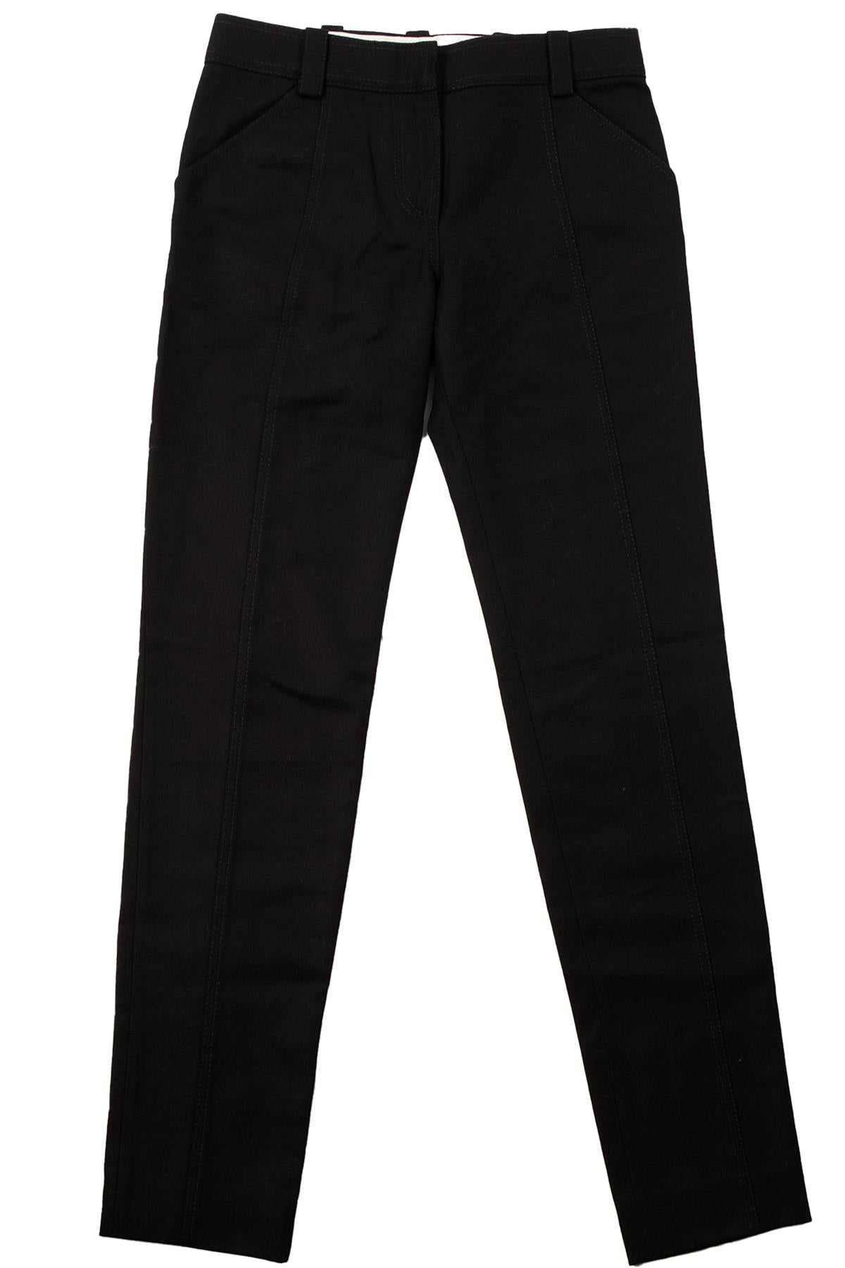 Proenza Schouler Black Wool Straight Leg Pants. Black. Zip fastening - Front. No composition label. XSmall (UK 6, US 2, FR 34, IT 38). Waist: 28 in. Hips: 36 in. Length: 38 in. Inseam: 30 in. Rise: 7 in.