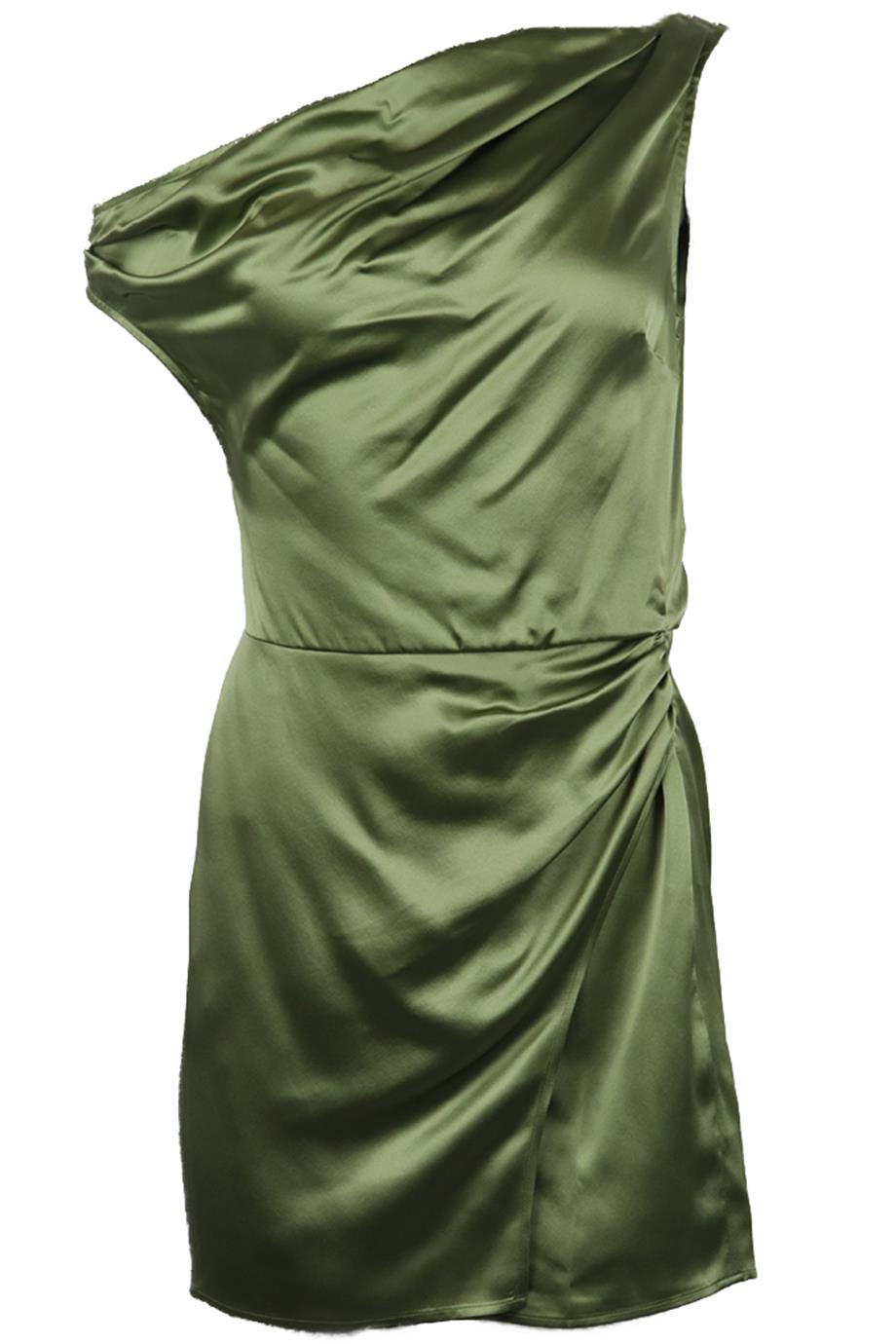 - Reformation one shoulder draped silk mini dress.