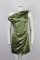 REFORMATION ONE SHOULDER DRAPED SILK MINI DRESS US 2 UK 6
