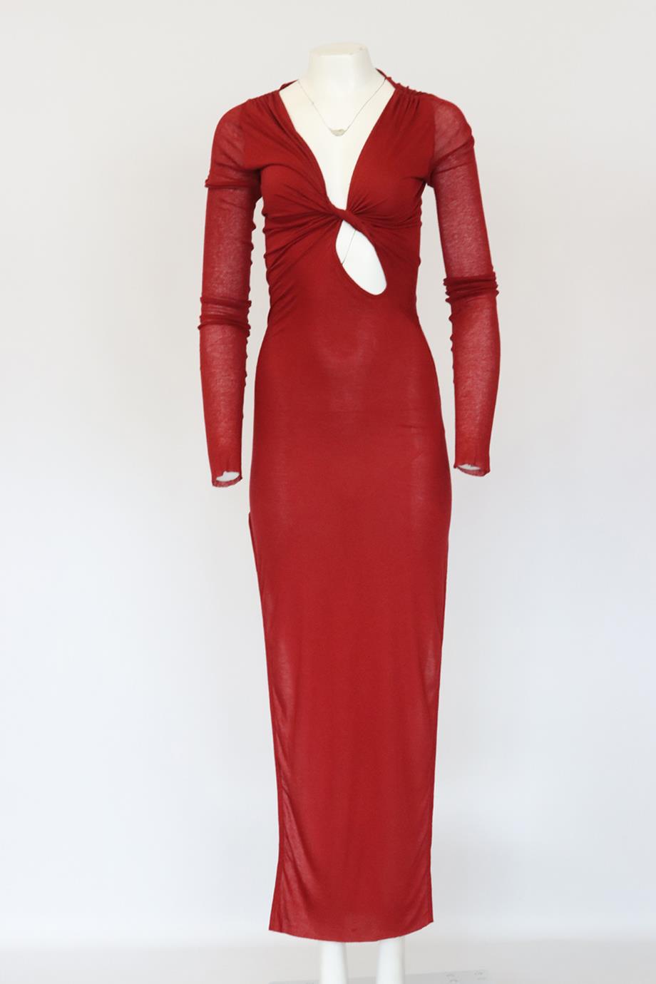 RICK OWENS LILLES CUTOUT STRETCH JERSEY MIDI DRESS IT 38 UK 6