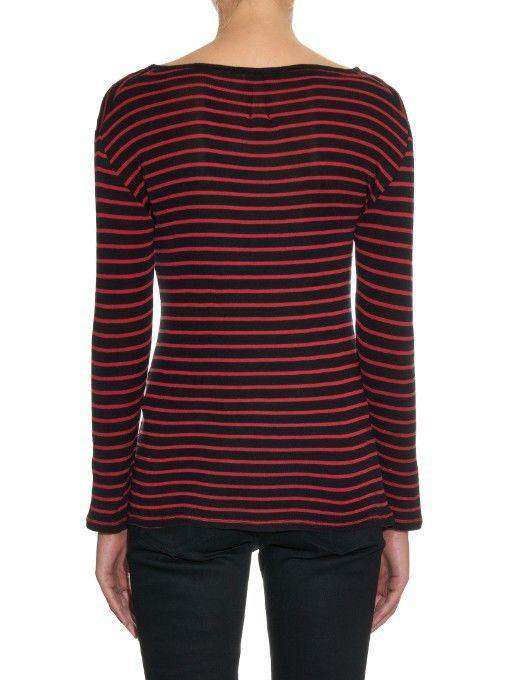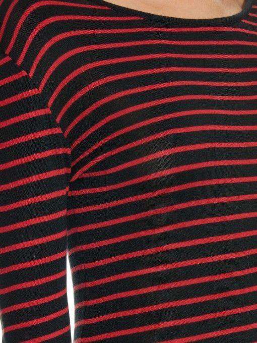 Saint Laurent’s black/red Breton stripe sweater is perfect for this season. Slash necked and crafted from 100% merino wool