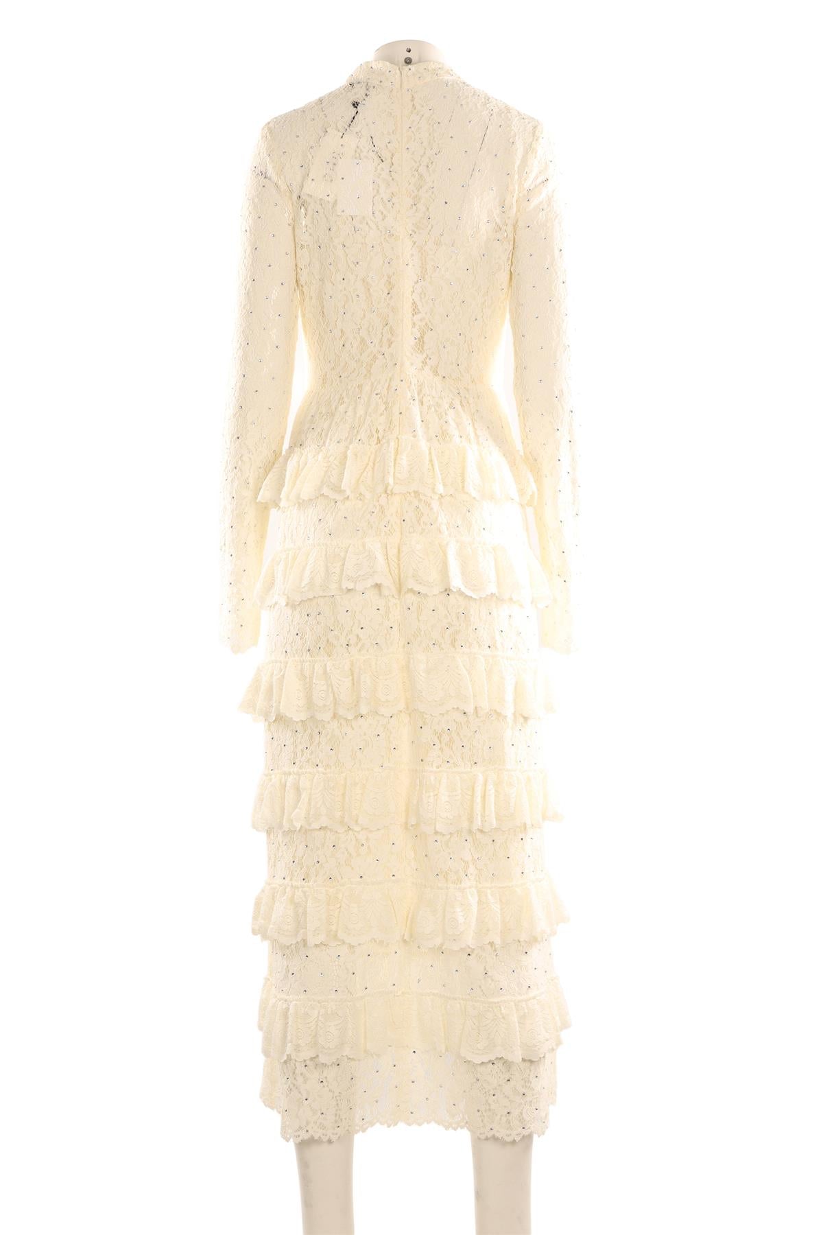 Sea New York Cream Lace Maxi Dress. Cream. Long Sleeve. Mock Neck. Zip fastening - Back. 80% Nylon, 20% Cotton, 100% Cotton, 100% Cotton. US 8 (UK 4, FR 32, IT 36). Bust: 36 in. Waist: 29 in. Hips: 48 in. Length: 48 in.