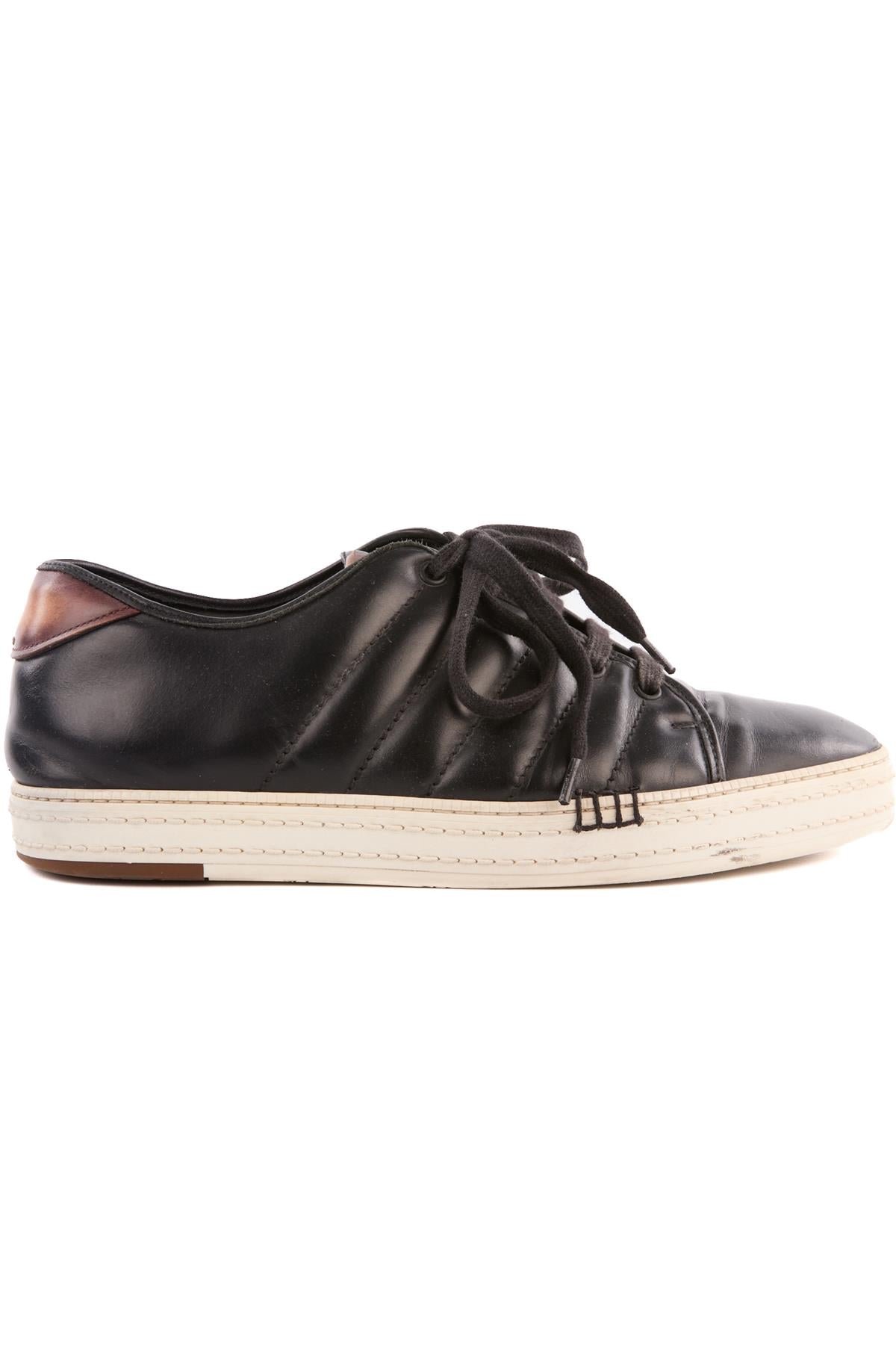 BERLUTI BLACK MEN'S LEATHER SNEAKERS UK 8.5 EU 42.5 US 9.5