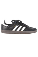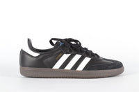 Adidas Black Samba Core Black Sneakers. Black. Lace up fastening - Front. Does not come with - dustbag or box. EU 38.5 (UK 5.5, US 6). Insole: 10.2 in. Heel Height: 1.2 in.