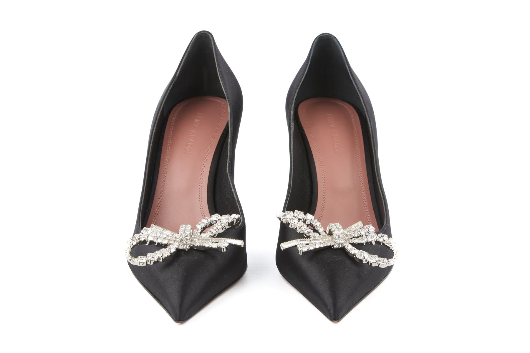 Amina Muaddi Black Crystal And Satin Pumps. Black. Slips on. Does not come with - dustbag or box. EU 37.5 (UK 4.5, US 7.5). Insole: 9 in. Heel Height: 3.5 in.