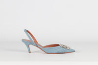 AMINA MUADDI CRYSTAL AND DENIM SLINGBACK PUMPS EU 37.5 UK 4.5 US 7.5
