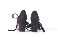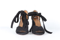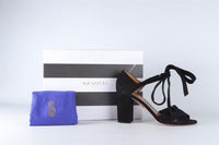 Aquazzura Black Suede Sandals. Black. Tie fastening - Front. Comes with - dustbag and box. EU 40 (UK 7, US 10). Insole: 10 in. Heel Height: 3.75 in.