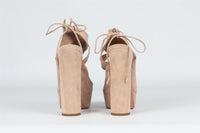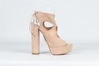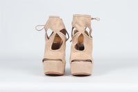 Aquazzura Nude Suede Sandals. Beige. Lace up fastening - Front. EU 38.5 (UK 5.5, US 8.5). Insole: 10 in. Heel Height: 6 in.