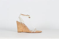 Aquazzura Pvc And Leather Wedge Sandals. White and beige. Buckle fastening - Side. Does not come with - dustbag or box. EU 39.5 (UK 6.5, US 9.5). Insole: 10 in. Heel Height: 4 in.