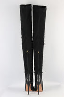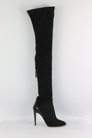 AQUAZZURA SNAKE EFFECT TRIMMED FAUX SUEDE OVER THE KNEE BOOTS EU 38 UK 5 US 8