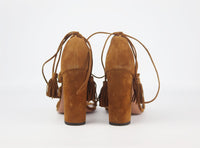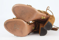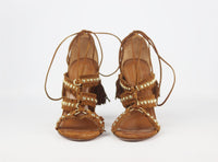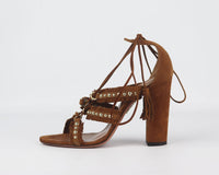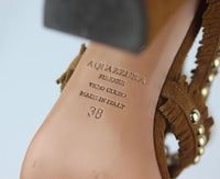 AQUAZZURA TULUM FRINGED STUDDED SUEDE SANDALS EU 38 UK 5 US 8