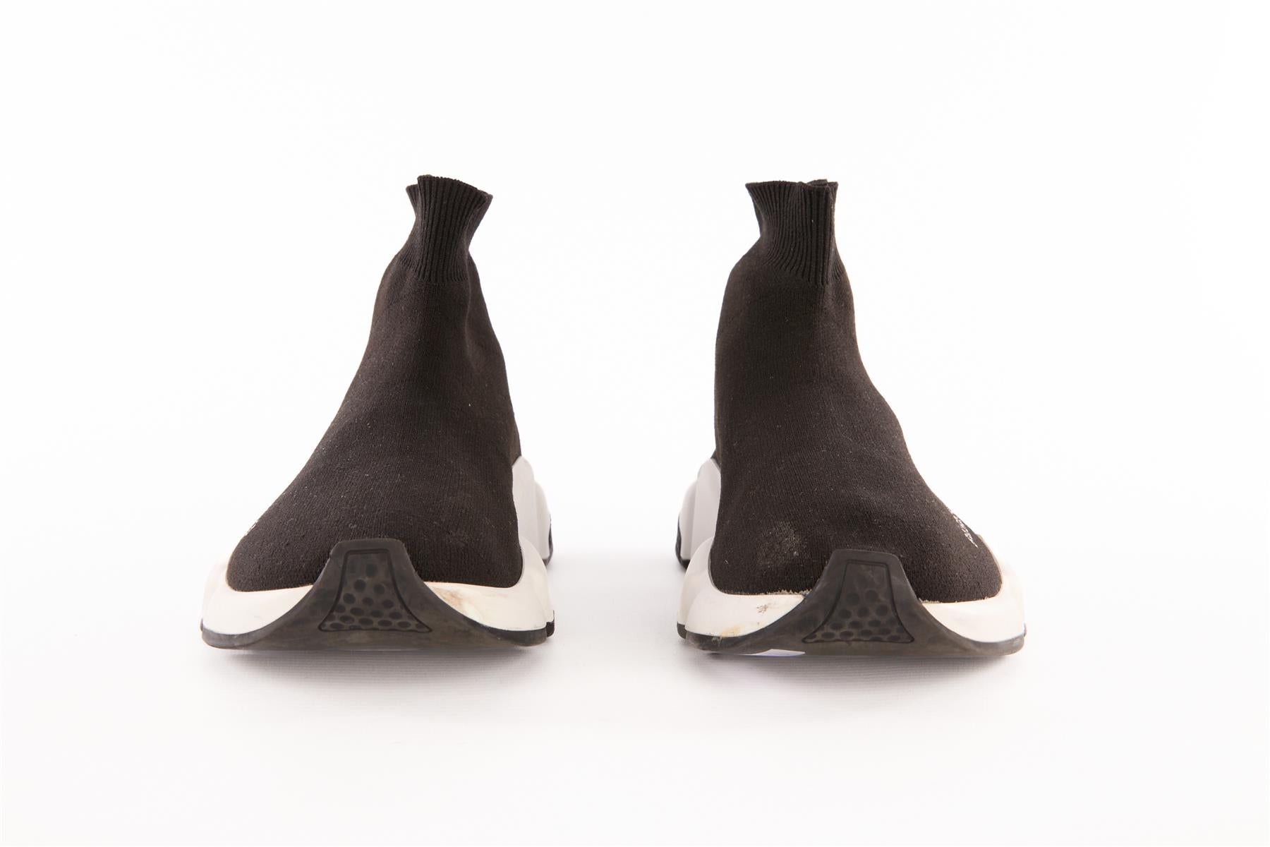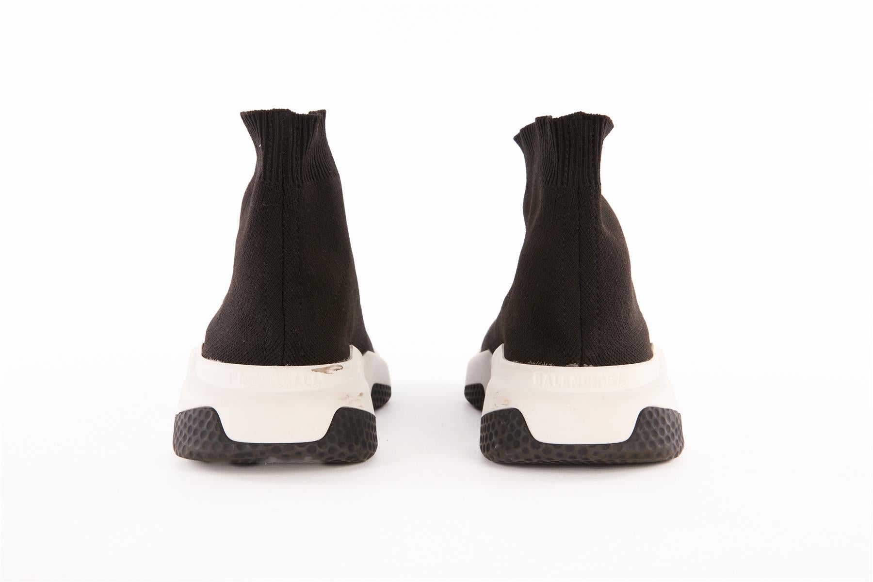 Balenciaga Black Speed Knit Sneakers. Black. Pull on. Does not come with - dustbag or box. EU 37 (UK 4, US 7). Insole: 10 in. Heel Height: 1.8 in.