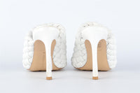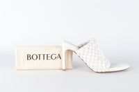 Bottega Veneta White Leather Mules. White. Slips on. Comes with - dustbag. EU 39 (UK 6, US 9). Insole: 10.75 in. Heel Height: 4 in.