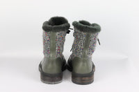 CHANEL 2016 SHEARLING LINED TWEED AND LEATHER ANKLE BOOTS EU 37.5 UK 4.5 US 7.5