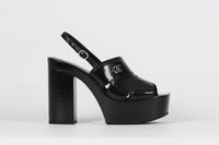 Chanel 2023 Leather Platform Sandals. Black. Buckle fastening - Side. Does not come with - dustbag or box. EU 41 (UK 8, US 11). Insole: 11 in. Heel Height: 5 in.