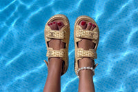 • Chanel Beige 2021 Dad CC Raffia And Leather Sandals.