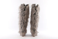 CHANEL GREY 2010 FAUX FUR KNEE HIGH BOOTS EU 40.5 UK 7.5 US 10.5