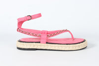 - Chanel Pink 2021 Chain And Quilted Leather Thong Sandals.