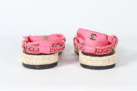 CHANEL PINK 2021 CHAIN AND QUILTED LEATHER THONG SANDALS EU 38 UK 5 US 8