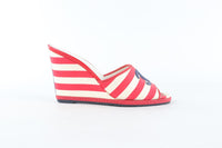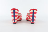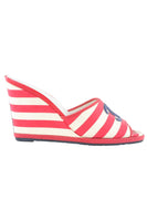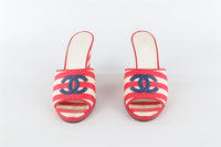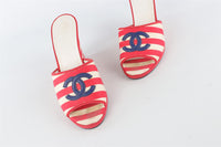 CHANEL RED 2010 CANVAS WEDGE SANDALS EU 38.5 UK 5.5 US 8.5