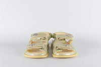 Chanel Yellow 2022 Dad Quilted Leather Sandals. Yellow. Velcro fastening - Front. EU 38 (UK 5, US 8). Insole: 10.25 in. Heel Height: 1.25 in.
