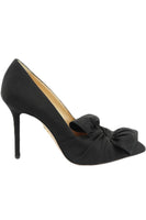 - Charlotte Olympia bow detailed satin pumps.