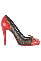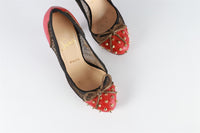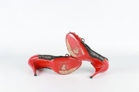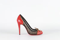 CHRISTAIN LOUBOUTIN RED LACE AND LEATHER PUMPS EU 38.5 UK 4.5 US 7.5