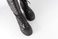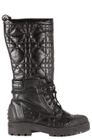 - Christian Dior Black Dior Iron Cannage Leather Knee High Boots.