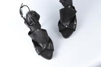 Christian Dior Black Leather Sandals. Black. Buckle fastening - Side. Does not come with - dustbag or box. EU 39 (UK 6, US 9). Insole: 10 in. Heel Height: 5 in.