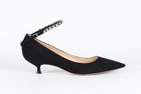 Christian Dior Crystal And Suede Pumps. Black. Buckle fastening - Side. EU 37 (UK 4, US 7). Insole: 9.4 in. Heel Height: 1 in.