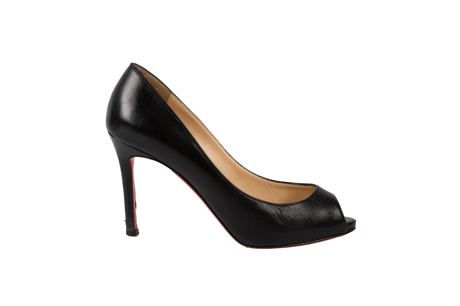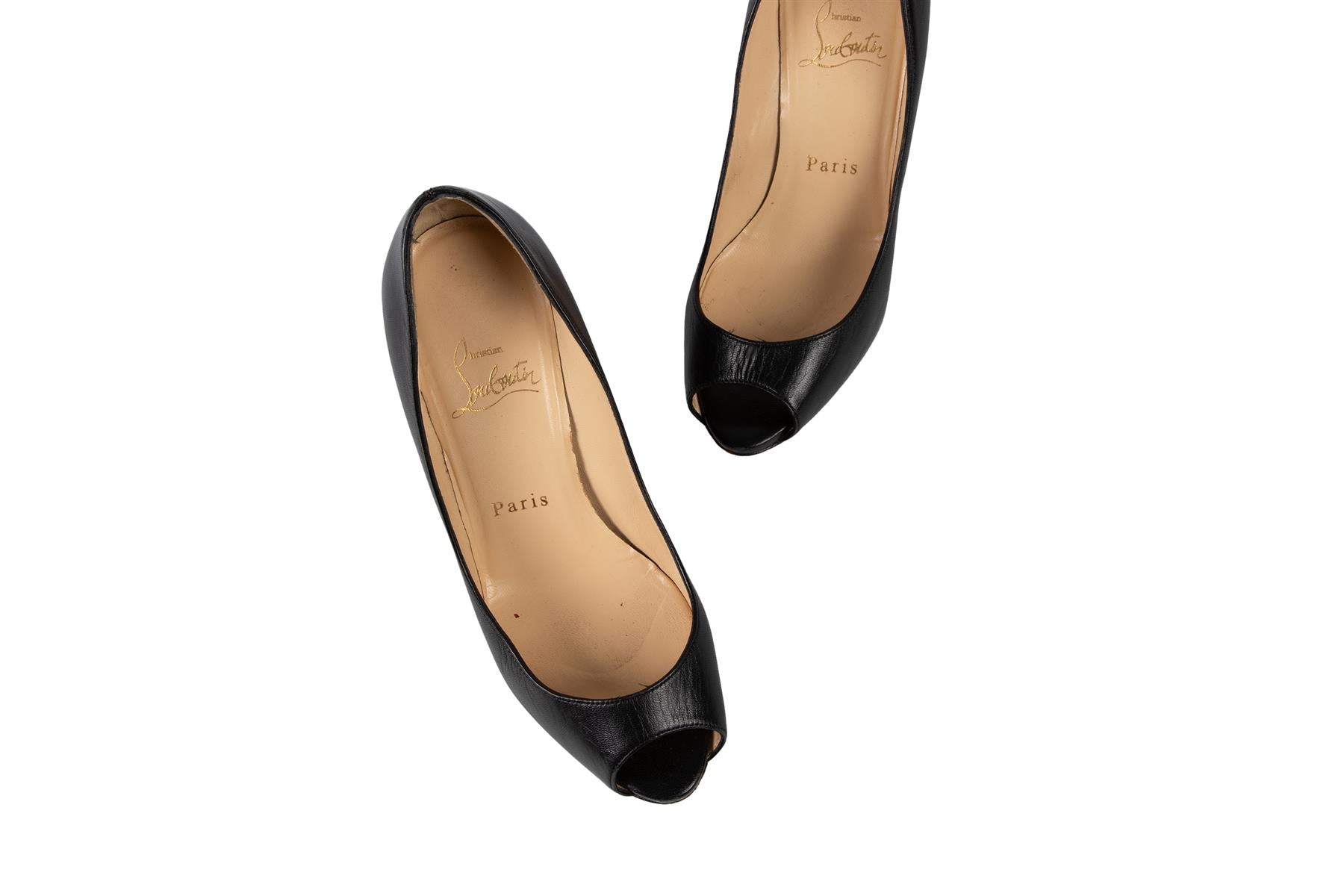 Christian Louboutin Black Leather Pumps. Black. Slips on. Does not come with - dustbag or box. EU 35.5 (UK 2.5, US 5.5). Insole: 9 in. Heel Height: 3.5 in.