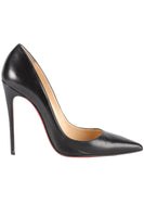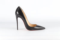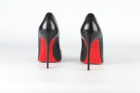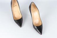 Christian Louboutin Black Leather Pumps. Black. Slips on. Comes with - dustbag and box. EU 37.5 (UK 4.5, US 7.5). Insole: 8.75 in. Heel Height: 4 in.