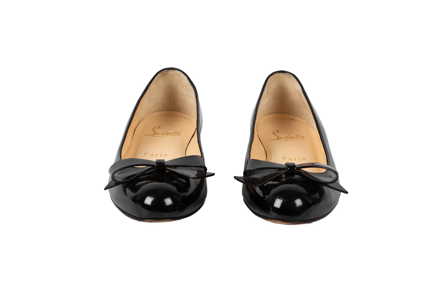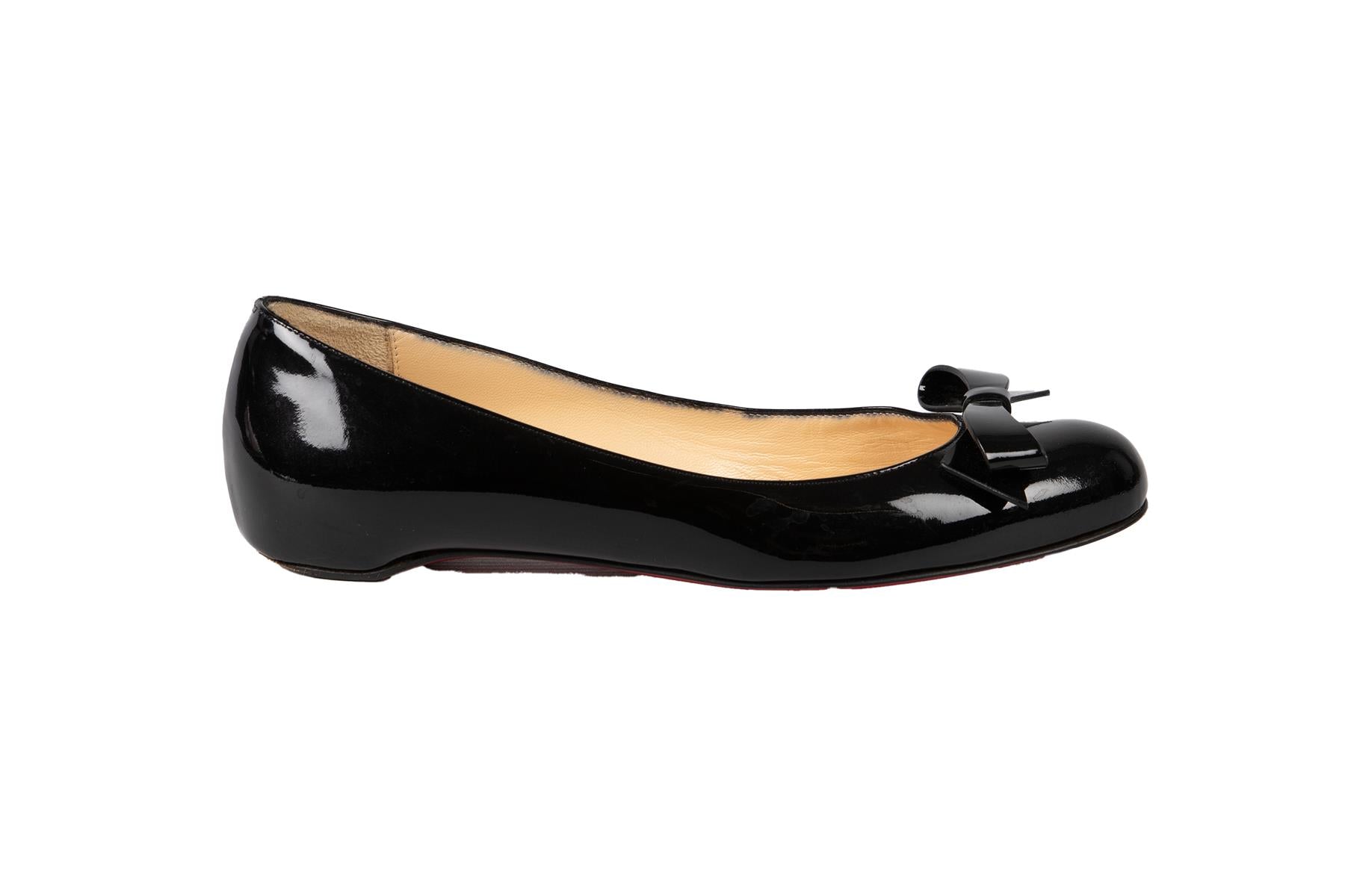 • Christian Louboutin Black Patent Leather Ballet Flats.