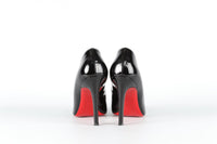 Christian Louboutin Black Patent Leather Pumps. Black. Slips on. EU 37.5 (UK 4.5, US 7.5). Insole: 9.75 in. Heel Height: 4 in.