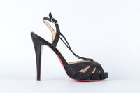 CHRISTIAN LOUBOUTIN BLACK SATIN SANDALS EU 38.5 UK 5.5 US 8.5