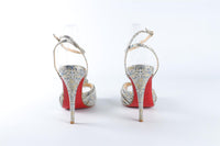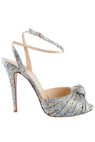 Christian Louboutin Blue Jacquard Sandals. Blue. Buckle fastening - Side. Does not come with - dustbag or box. EU 40 (UK 7, US 10). Insole: 10.3 in. Heel Height: 5 in.