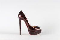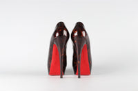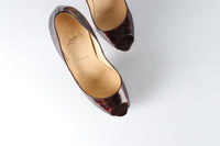 CHRISTIAN LOUBOUTIN BROWN PATENT LEATHER PLATFORM PUMPS EU 38.5 UK 5.5 US 8.5