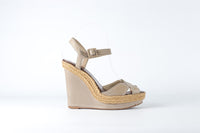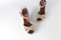 CHRISTIAN LOUBOUTIN GREY LEATHER WEDGE SANDALS EU 38 UK 5 US 8