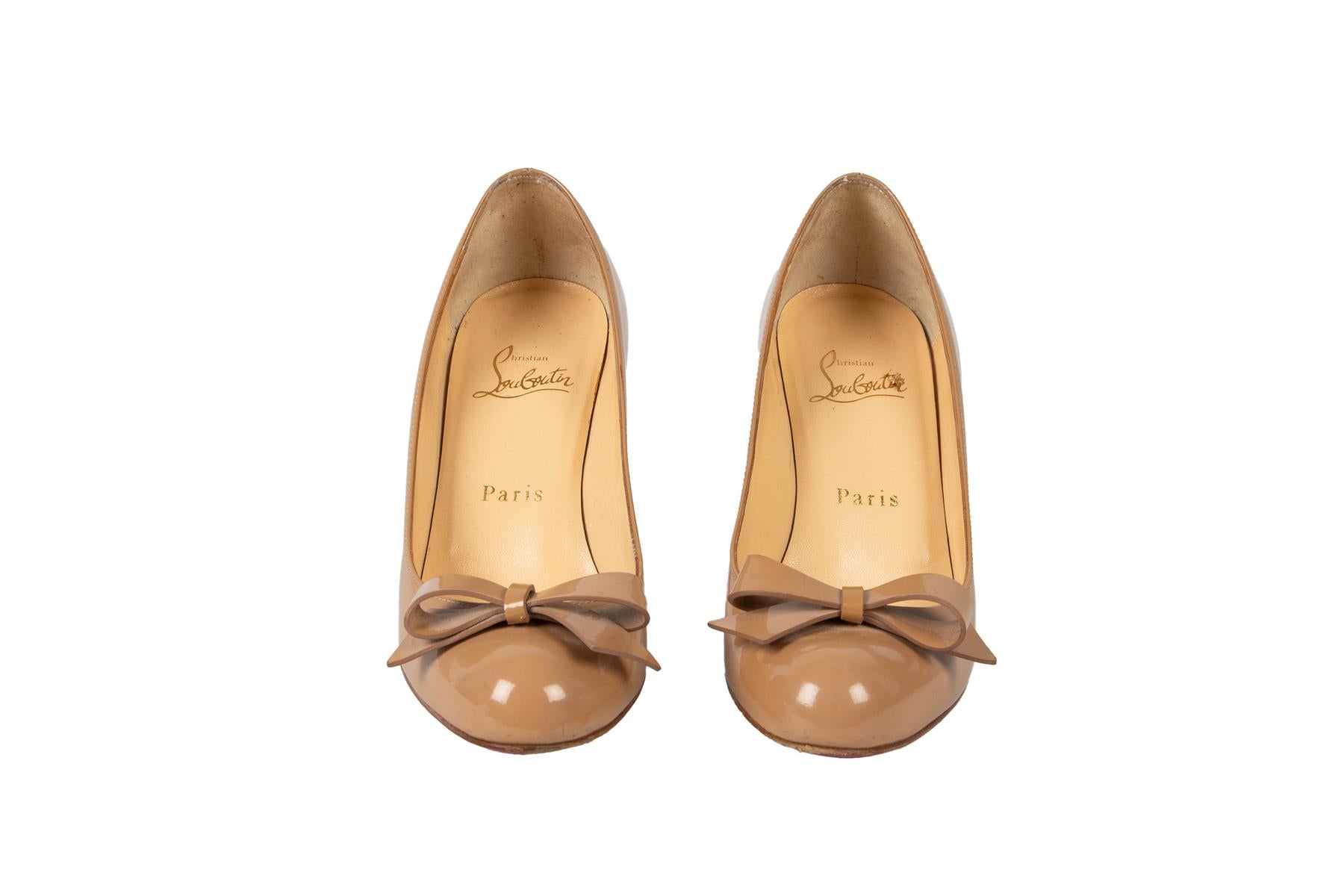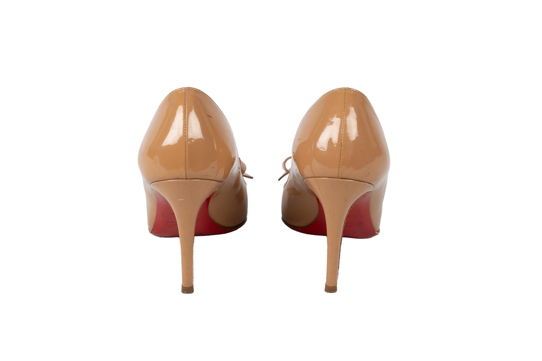 Christian Louboutin Nude Patent Leather Pumps. Nude. Slips on. Comes with - dustbag. EU 35.5 (UK 2.5, US 5.5). Insole: 9 in. Heel Height: 3 in.