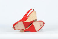 Christian Louboutin Patent Leather Wedge Sandals. Red. Buckle fastening - Side. Comes with - dustbag. EU 39 (UK 6, US 9). Insole: 10 in. Heel Height: 4.5 in.