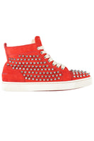 Christian Louboutin Red St Louis Suede Sneakers. Red. Lace up fastening - Front. Does not come with - dustbag or box. EU 36.5 (UK 3.5, US 6.5). Insole: 9.75 in. Heel Height: 1 in.