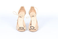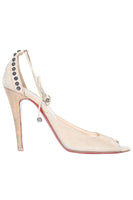 Christian Louboutin Suede Sandals. Beige. Tie fastening - Front. Does not come with - dustbag or box. EU 38.5 (UK 5.5, US 8.5). Insole: 9.5 in. Heel Height: 4.2 in.