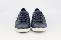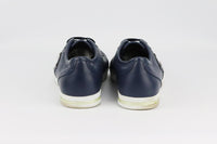 - Made from navy perforated leather in a classic low-top style with silver logo plaque on the side.