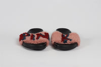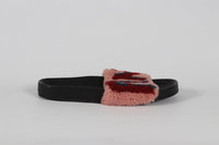 FENDI PINK SHEARLING AND LEATHER SLIDES EU 39 UK 6 US 9