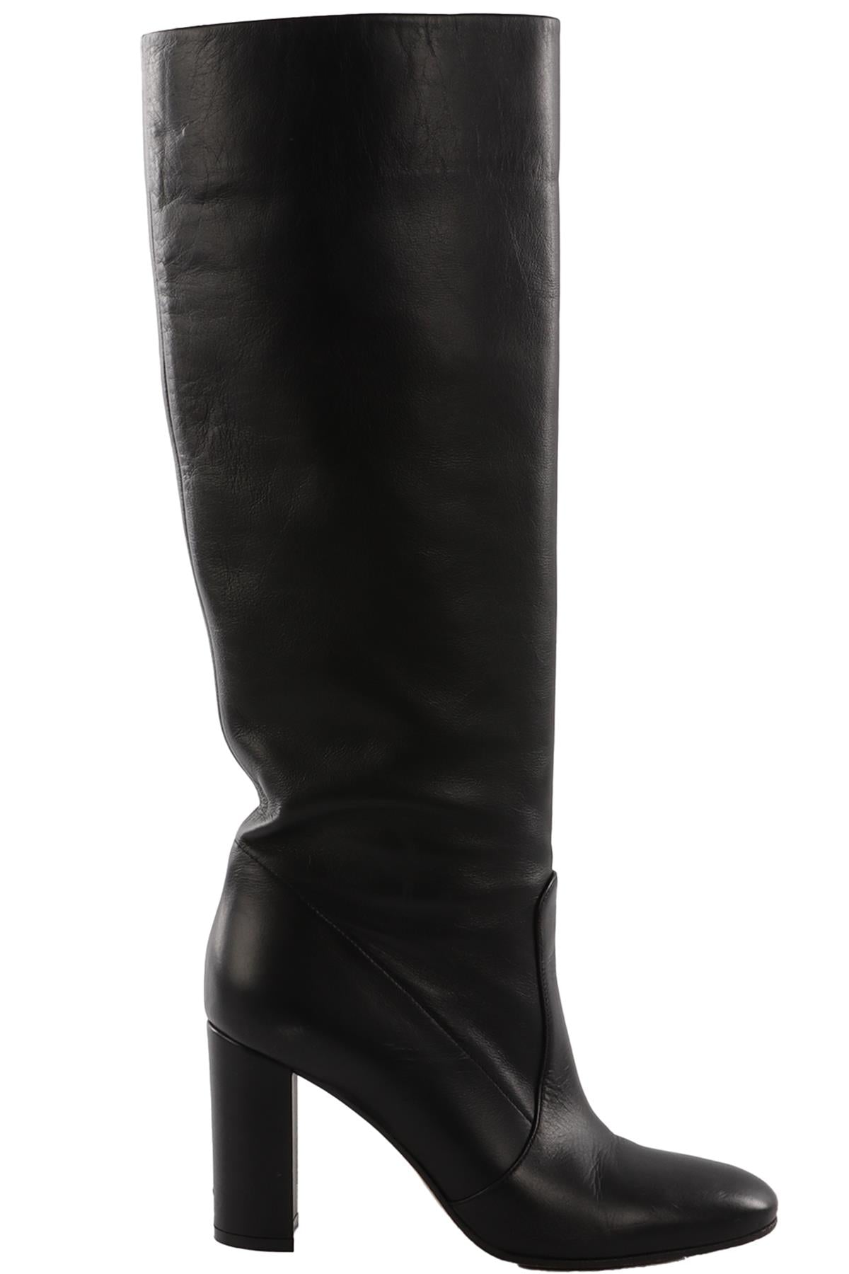 Gianvito Rossi Black Leather Knee High Boots. Black. Pull on. Does not come with - dustbag or box. EU 38.5 (UK 5.5, US 8.5). Insole: 9.5 in. Heel Height: 3.5 in.
