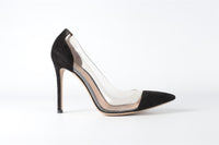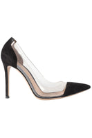 Gianvito Rossi Black Pvc And Suede Pumps. Black. Slips on. Does not come with - dustbag or box. EU 38.5 (UK 5.5, US 8.5). Insole: 10.2 in. Heel Height: 4.2 in.