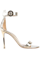 Gianvito Rossi Gold Leather Sandals. Gold. Buckle fastening - Side. EU 38.5 (UK 5.5, US 8.5). Insole: 9.8 in. Heel Height: 4.2 in.