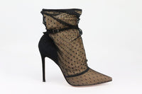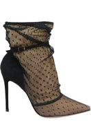 - These ankle boots by Gianvito Rossi are made in a sleek point-toe silhouette, they're made from polka dot tulle and accented by black suede, they look especially glamorous with an LBD.