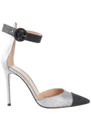 GIANVITO ROSSI SILVER GLITTER PUMPS EU 37 UK 4 US 7