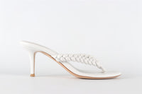 Gianvito Rossi White Leather Thong Sandals. White. Slips on. Comes with - dustbag. EU 39 (UK 6, US 9). Insole: 10 in. Heel Height: 3 in.